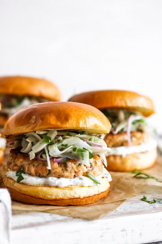 Quiero que me digas honestamente, ¿a quién no le gustan las hamburguesas? ¡A todos nos gusta! Pero, la mayoría de las veces, las incluimos en la categoría de placeres culpables, las hamburguesas no necesariamente corresponden a los patrones de una dieta equilibrada. Por las salsas, llenas de sales; por el exceso de carne y la comida demasiado cocida, etc. Pero, ¿quién dice que no siempre podemos disfrutar de una hamburguesa saludable? ¡Porque podemos! Sobre todo cuando elegimos algo nuevo, algo que no sigue la clásica receta de la hamburguesa con la tradicional «albóndiga». Podemos optar por algo igual de sabroso, pero que se adapta fácilmente a una dieta equilibrada. ¡Os presento la hamburguesa de salmón! Rico en proteínas y grasas saludables, y cuando se combina con los sabores adecuados, ¡extremadamente delicioso! Si te gusta el sushi, este clásico enfoque de hamburguesa te excitará.